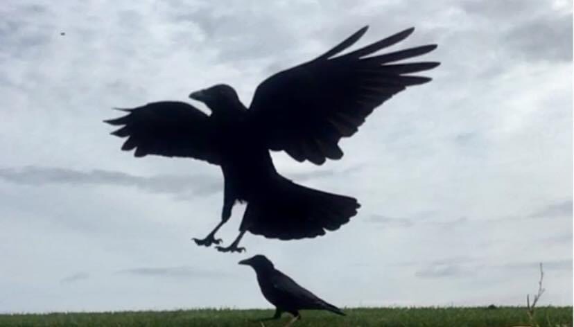 The Black Bloc is the largest group of crows I have come to know, and are so called not just because of their colour, but because they are so vast in numbers it is a lot more difficult to distinguish between individuals. Numbers vary when I arrive, but there can be anything between seven and fifty crows squabbling on the cliffs. There were two I could pick out, Meatball and Roadkill, who were always together. Roadkill was so called because of her appearance pre-moult. Meatball I knew because he had a very particular ritual whenever he landed near me. If you have seen my logo, that is his silhouette. He would bow and let out three, deep bellowing caws, and will only take a nut if I throw one to him personally, ignoring a generic pile of snacks even if it is inches away from him. The others have now learned to bellow in the same way so they get my attention, meaning it is harder to pick him out. Roadkill has cleaned up nice since her new feathers came through.