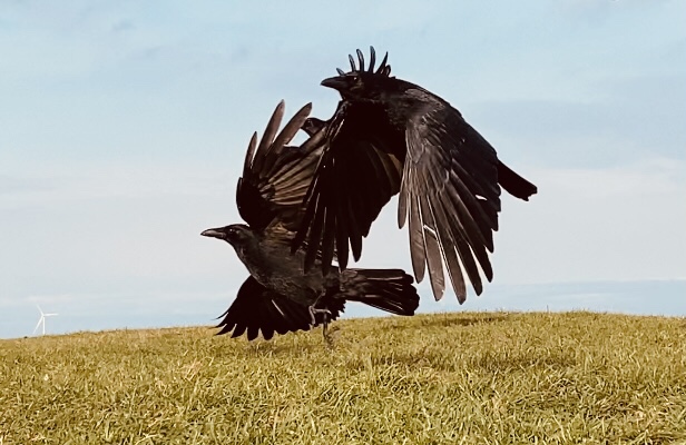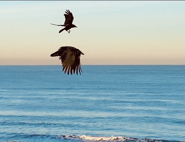 So instead, I wrapped up and took myself down to a ferocious sea front with some offerings of grapes and nuts and watched the crows face the relentless western wind like they were in defiance of God himself. When on the ground, they would lie with their bodies as low as they could get them, then spring up to retrieve a snack before diving out the way again. Sometimes the younger ones decide to spend a bit of extra time in the air, getting their thrills by tilting their wings so they get thrown up in the air, and dancing over the gusts rather than fighting them. I can’t decide whether they are the corvid equivalent of surfers or boy racers yet.